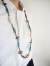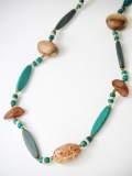 穴を開けた貝殻とウッド系のビーズにテグスを通したネックレスです。素材の貝殻はこちら>>>