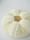 淡い黄緑色をしたウニ殻。浅海の転石やサンゴのすき間などに生息しているやや小型のガンガゼです。