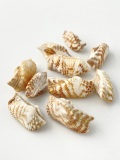 殻は厚くよくふくらみ、放射肋は前後部で強くなっています。色は乳白色に褐色の模様が入っています。※両面を貼り合わせてある商品です。