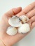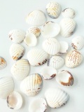殻は固くて平らで、白色の上に茶色の放射状、縞、ジグザグ模様があります。100gで約25枚くらいあります。
