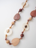 貝殻のパーツとウッド系のビーズにテグスを通したネックレスです。素材の貝殻はこちら>>>