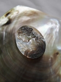 天然のクロチョウガイを浮き彫りして作られたカメオです。