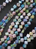 天然の淡水真珠貝を削り出しパステルカラーに染めたシェルビーズ。