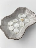 艶と光沢のある淡水真珠貝のプレートをカットした商品です。トップに穴を開けているので金具等を付けるだけでイヤリングやピアス、ペンダントなどのアクセサリーを作れます。