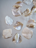 真珠層の光沢が美しい天然の淡水真珠貝をストーン状にカットして通し穴を開けたビーズ。