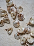 天然の貝殻にゴールドカラーの縁取りをして金具(ヒートン)を取り付けたチャーム。