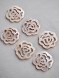 淡いピンク色の天然淡水真珠貝を削り出して作られた貝殻ビーズです。真珠層独特の光沢と柔らかい天然素材ならではの風合いをお楽しみください。飾りボタンとして使用するのもおすすめです。