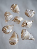 カットした貝殻に金属をメッキ付けしたパーツです。