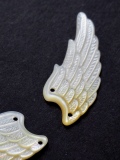 天然のシロチョウガイの黄味が強い部分を削り出して作られた貝殻ビーズです。真珠を作り出す母貝「マザーオブパール」の一種。虹色に輝く美しい真珠層があるため、装飾品などに使用されています。