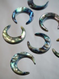 虹色に輝く独特の光沢が美しいパウアアバロン(ヘリトリアワビ)を加工して作られた貝殻パーツです。