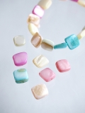 天然の淡水真珠貝を削り出しパステルカラーに染めたシェルビーズ。マザーオブパールならではの光沢と透明感のある艶が美しい商品です。