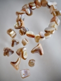 真珠層の光沢が美しい天然の淡水真珠貝をランダムカットして通し穴を開けたビーズ。