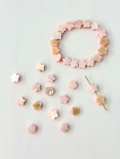 天然の淡水真珠貝を削り出しパステルカラーに染めたシェルビーズ。マザーオブパールならではの光沢と透明感のある艶が美しい商品です。