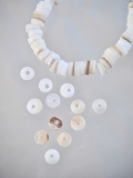 貝殻の主成分は炭酸カルシウムです。酸によって溶けて表面が曇るなどの変化があるため、汗(弱酸性)が付着した際は水で優しく手洗いしてください。洗剤を使用する際は中性洗剤をご使用ください。