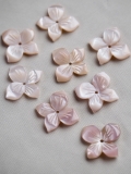 淡いピンク色の天然淡水真珠貝を削り出して作られた貝殻ビーズです。真珠層独特の光沢と柔らかい天然素材ならではの風合いをお楽しみください。飾りボタンとして使用するのもおすすめです。