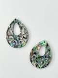虹色に輝く独特の光沢が美しいパウアアバロン(ヘリトリアワビ)を薄く削った貝殻シートと樹脂で作られた貝殻パーツです。