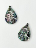 虹色に輝く独特の光沢が美しいパウアアバロン(ヘリトリアワビ)を薄く削った貝殻シートと樹脂で作られた貝殻パーツです。