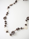 貝殻のパーツとココナッツビーズにテグスを通したネックレスです。素材の貝殻はこちら>>>
