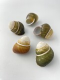 殻口部は約1.5cm前後程度あります。緑色や黄緑色のもの、螺旋模様もさまざまで個体毎の個性が豊かです。