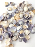 今回入荷分は紫色の他、白色系の貝殻も入っております。あまり品質が良くありません。ご了承の上、お買い求めください。100gで約100個くらいあります。