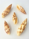 フデガイ科。殻は紡錘形で螺塔が高い貝です。体層には丸みがなく殻の側面は直線的で縫合部にはやや段差があります。注.(お送りする商品には同じサイズや色、形のものはございませんのでご了承下さい。)