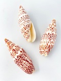 チョウセンフデガイに似ていますが、殻が厚くて重く、縫合部に突起をもち斑紋も赤色が強いことによって区別されます。