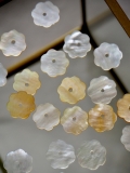 天然のシロチョウガイを削り出して作られた貝殻ビーズです。真珠を作り出す母貝「マザーオブパール」の一種。虹色に輝く美しい真珠層があるため、装飾品などに使用されています。