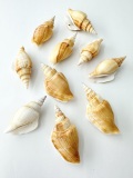 ソデボラ科の貝はいずれも足の裏が小さいのでギザギザのついたフタを海底にひっかけてジグザグに歩きます。シドロガイの名はその様(しどろもどろ)を形容したといわれています。※先端が若干欠けているものが含まれる場合があります。