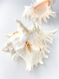 テングガイはアッキガイ科の中で最大の種類で、全体に白色で殻口内部はうすいオレンジ色です。ら塔は低く殻口外側に強大な突起をもつことが特徴です。