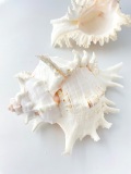 テングガイはアッキガイ科の中で最大の種類で、全体に白色で殻口内部はうすいオレンジ色です。ら塔は低く殻口外側に強大な突起をもつことが特徴です。