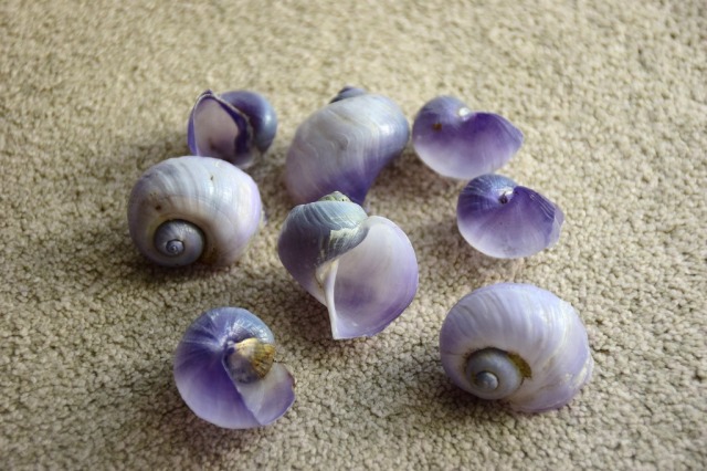 ルリガイはその名の通り瑠璃色をした、非常に薄く脆い殻をした貝です。軟体部はインク壺から零れ落ちたかのような、貝殻よりもはるかに深い瑠璃色をまとっています。