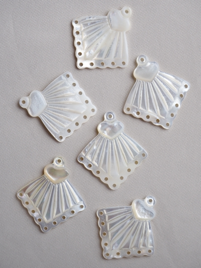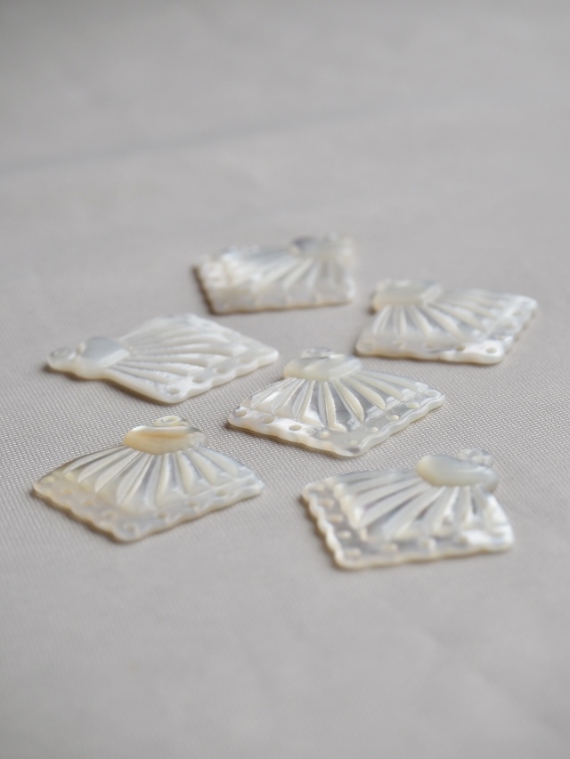 貝殻の主成分は炭酸カルシウムです。酸によって溶けて表面が曇るなどの変化があるため、汗(弱酸性)が付着した際は水で優しく手洗いしてください。洗剤を使用する際は中性洗剤をご使用ください。