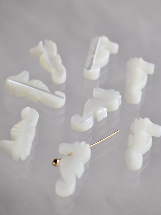 貝殻の主成分は炭酸カルシウムです。酸によって溶けて表面が曇るなどの変化があるため、汗(弱酸性)が付着した際は水で優しく手洗いしてください。洗剤を使用する際は中性洗剤をご使用ください。