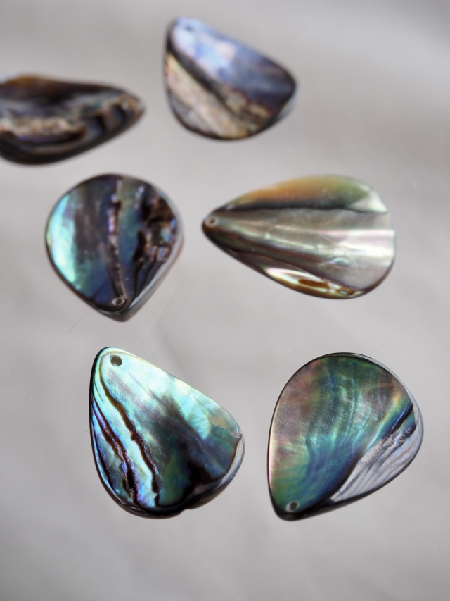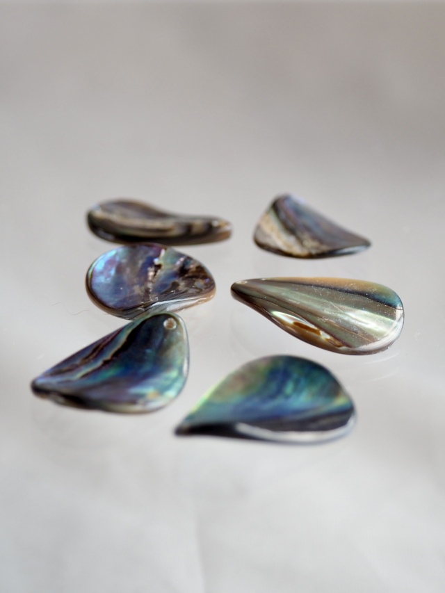虹色に輝く独特の光沢が美しいパウアアバロン(ハリオティス アイリス)を削り出したパーツです。