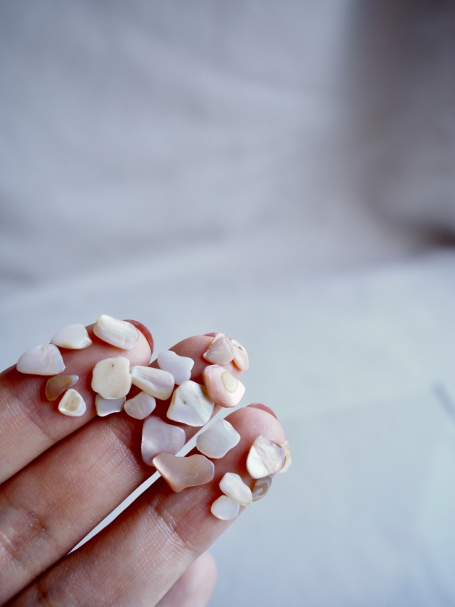 淡水パールの母貝である淡水真珠貝を砕いたもの。マザーオブパールならではの光沢と透明感のある艶が美しい商品です。レジンやネイルアートへの封入、キャンドルに混ぜ込んだり、貼り付けるデコレーションなどに使用できます。