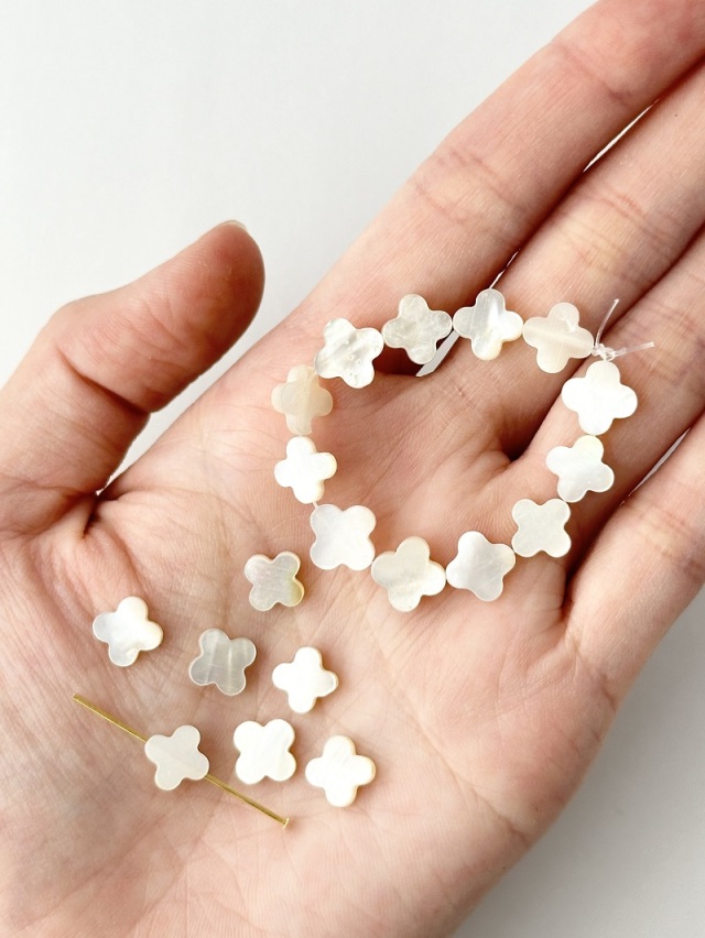 • シェルビーズ-クローバー(シロチョウガイ)【約8~9mm(約10cm・約12個)】[メール便可]まとめ買い10%OFF #1343 En:white MOP - Shell Beads 貝殻
