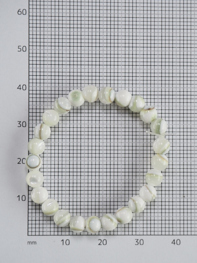 白味が多い爽やかな色の夜光貝ビーズです。