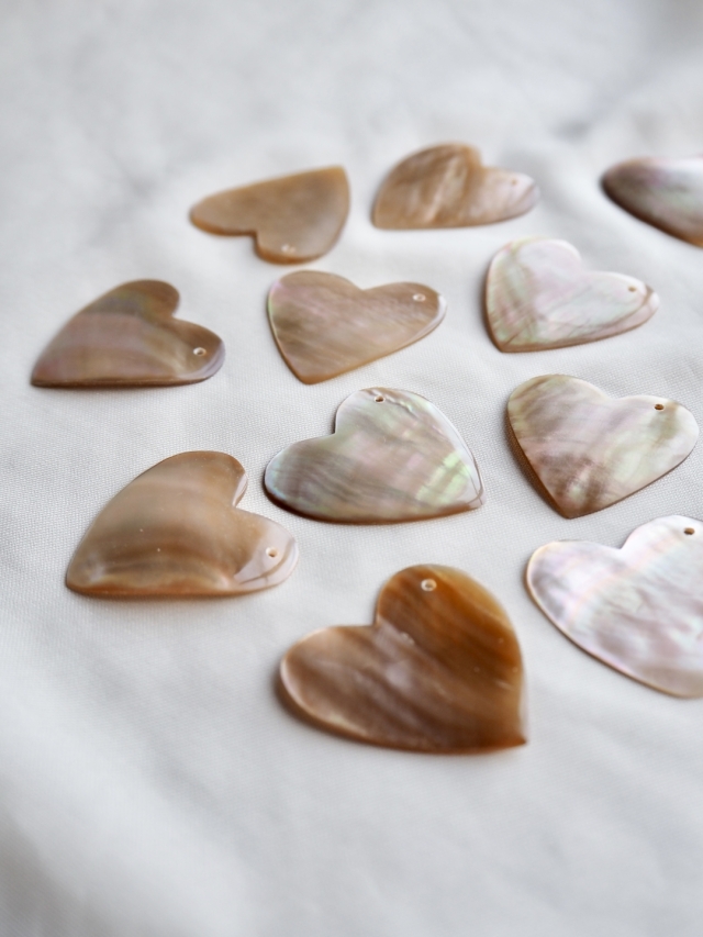 真珠母貝であるマベガイをカットし、穴あけ加工したシェルパーツです。