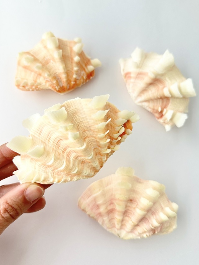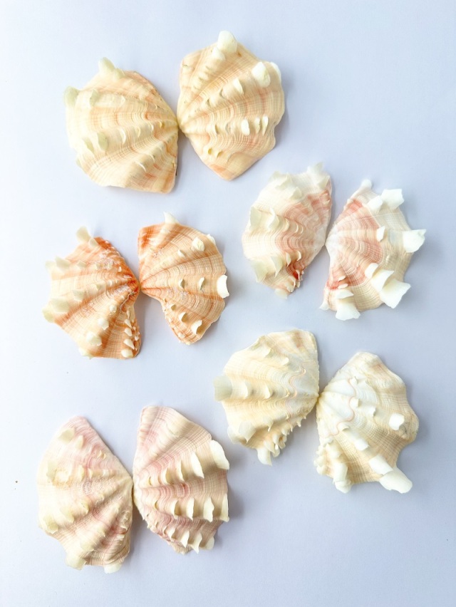 ヒレシャコガイ(オレンジ系)両面-おまかせ発送-【約8~10cm/1組】 - Not for overseas sale - 貝殻
