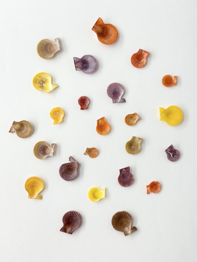 小さな汚れはピンセットでカリカリして落としました(家庭用酸性洗剤に付け置きしたので簡単に削れる)。内側は黒ずみが気になったのでゴールドでペイント。夜光貝ビーズをアクセントに。黄色ヒオウギちゃんも可愛いでしょ〜! pic.twitter.com/sDPX8Smf3Q