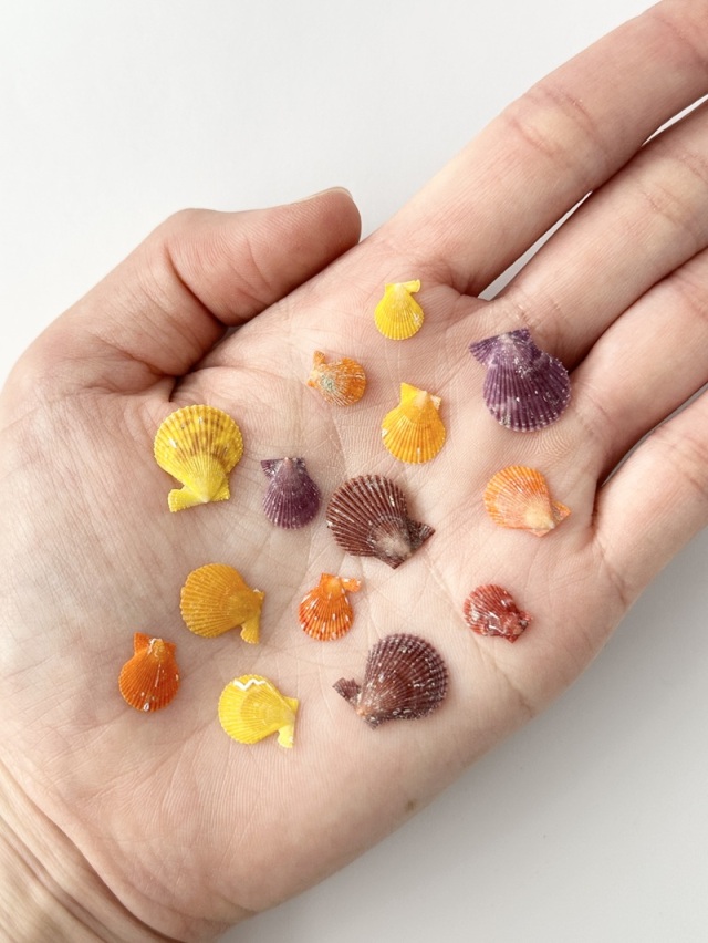 小さな汚れはピンセットでカリカリして落としました(家庭用酸性洗剤に付け置きしたので簡単に削れる)。内側は黒ずみが気になったのでゴールドでペイント。夜光貝ビーズをアクセントに。黄色ヒオウギちゃんも可愛いでしょ〜! pic.twitter.com/sDPX8Smf3Q— 貝殻の問屋さん shop for sea shell & sea life | 貝殻ネタを毎日 (@kaigaradonya) October 17, 2023
